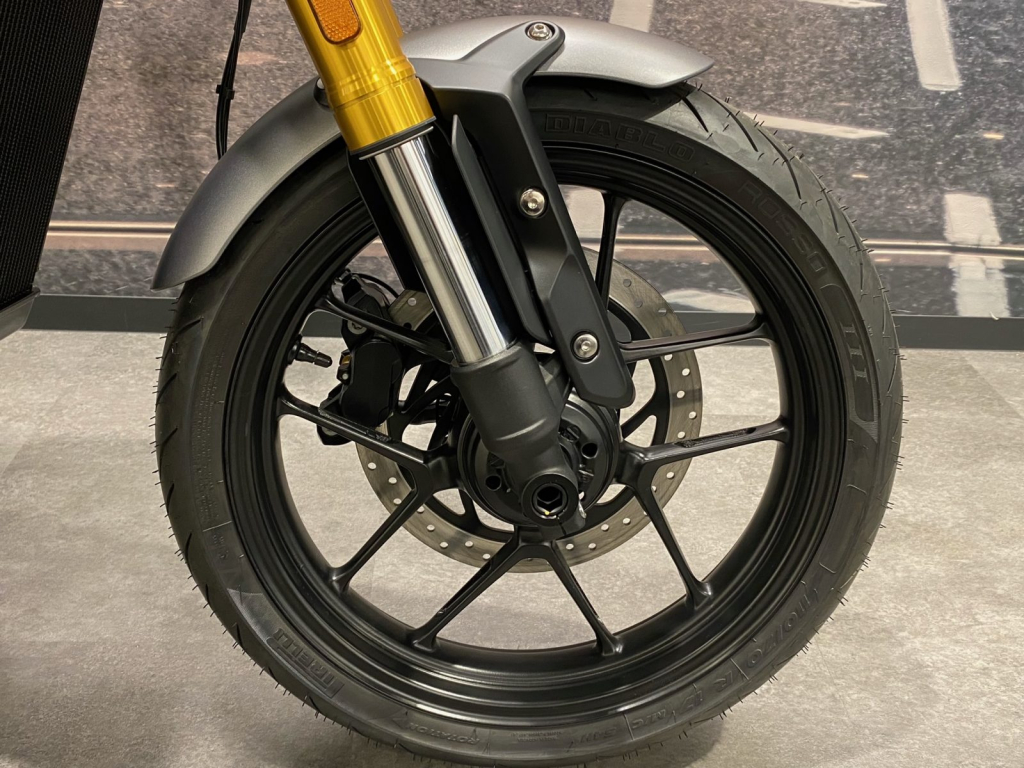 倒立フロントフォーク、ラジアルマウントキャリパー、ABS、トラクションコントロールを標準装備。